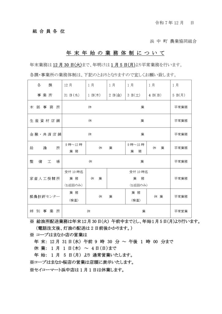 年末業務は12月30日(火)まで、年明けは1月5日(月)より平常業務を行います。